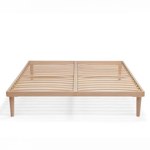 Fornito con quattro gambe a fuso in faggio massiccio, alte 25 cm, ideali per sfruttare lo spazio sotto la base a doghe facendo scorrere borse o valigie. Un'ulteriore gamba centrale di rinforzo viene fornita a partire dalla misura 140x190 cm.