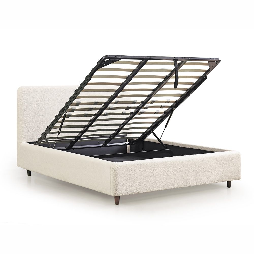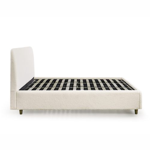 Il tessuto bouclette eccezionalmente denso del letto e le 4 gambe a fuso in legno verniciato noce si integreranno perfettamente nell'arredamento della vostra camera da letto.