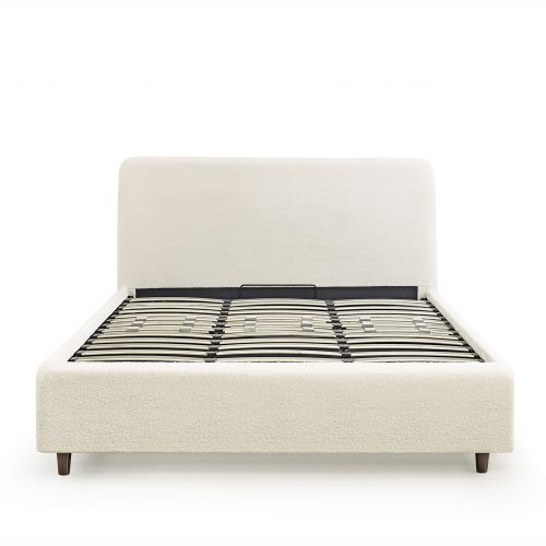 Grazie al suo ingegnoso sistema di martinetti, potrete sollevare senza sforzo la base e scoprire lo spazio in cui riporre piumoni, valigie, scatole di scarpe e altri oggetti che occupano spazio quotidianamente.