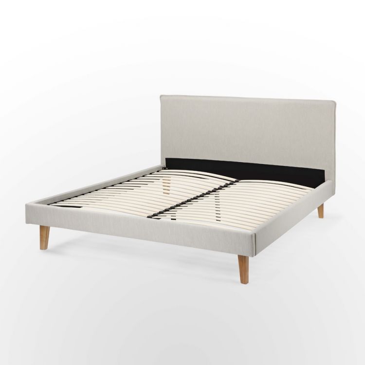 Il letto Novobed Beige offre comfort e robustezza grazie alle sue doghe flessibili con fermezza regolabile.