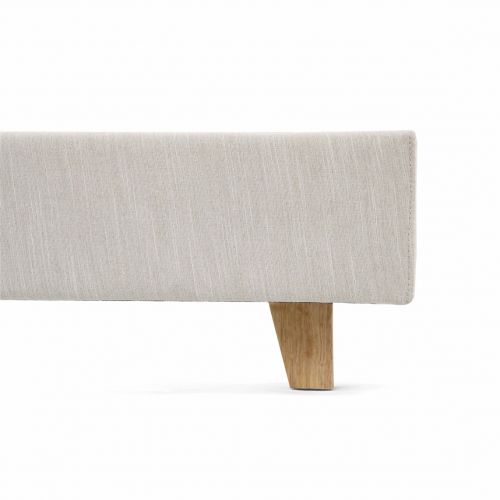 Il letto è realizzato con un tessuto di rivestimento spesso e resistente. La testata è cucita con una mantovana piatta per un look molto chic.