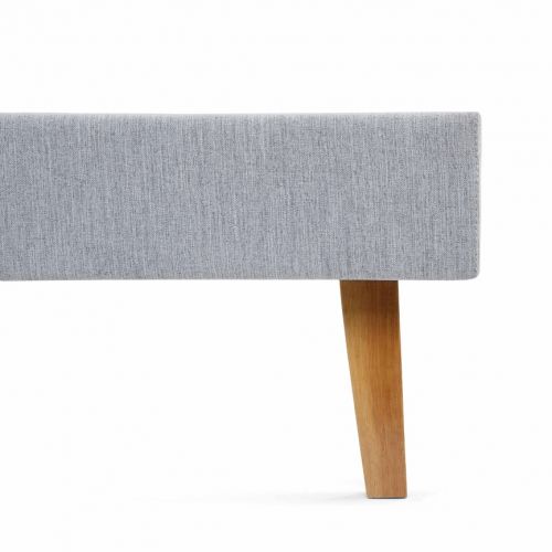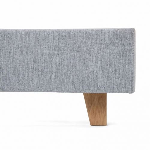 Il letto è realizzato con un tessuto di rivestimento spesso e resistente. La testata è cucita con una mantovana piatta per un look molto chic.