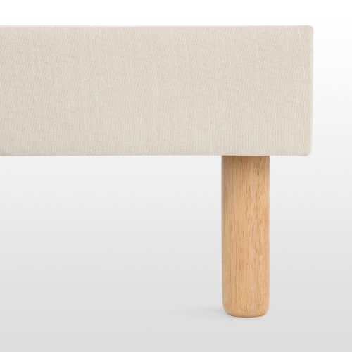 La base è realizzata con un tessuto di rivestimento spesso e resistente. Abbinato a gambe in rovere massiccio per il massimo dello stile.