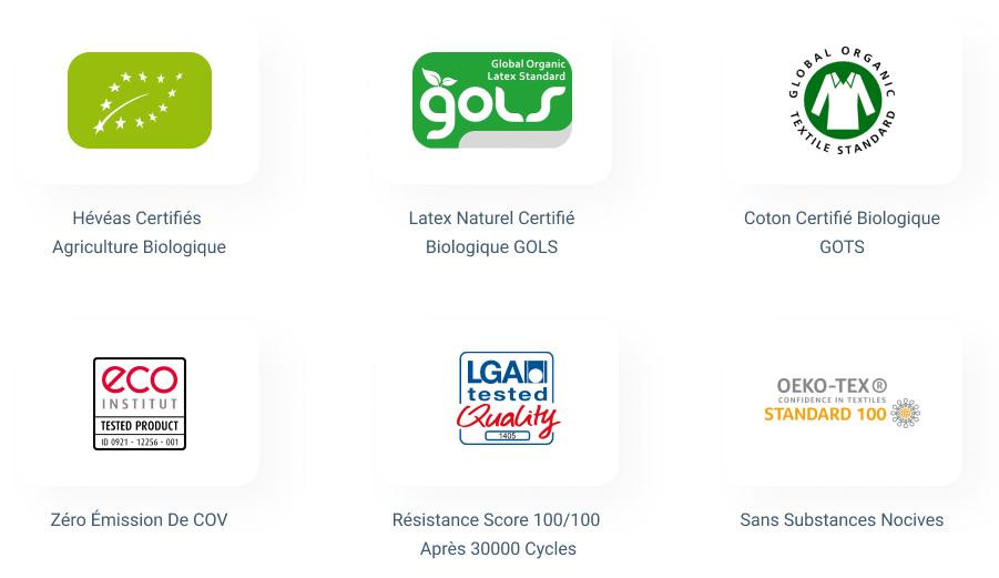 Un materasso in lattice naturale organico a zero emissioni, certificato GOLS, combinato con molle insacchettate riciclabili all'infinito per un sonno sano e un ambiente protetto senza prodotti tossici.
